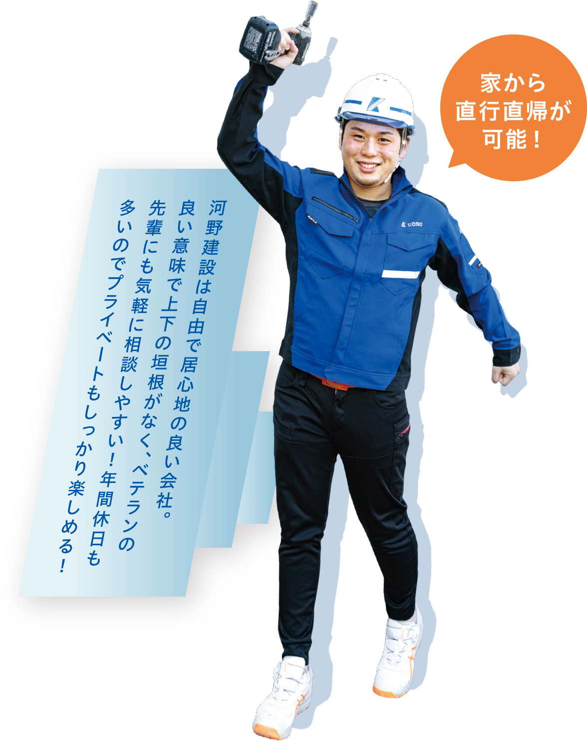 河野建設自慢の働く環境!気持ち良く、楽しく業務に専念!