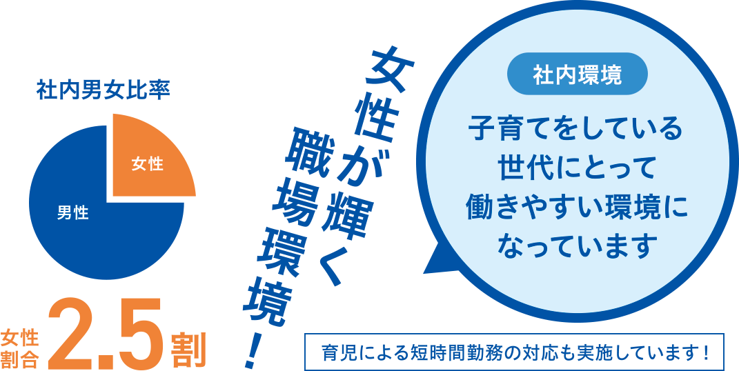 転勤なし!育休、産休取得実績あり!評価や昇給に男女の差はありません!